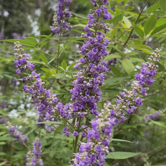 Vitex agnus-castus, commonly known as chaste tree, chasteberry, or monk’s pepper, is a deciduous shrub or small tree in the mint family (Lamiaceae), native to the Mediterranean region and western Asia. Revered since ancient times for its medicinal and symbolic associations, this elegant plant is prized both for its beauty and its therapeutic uses. It typically grows 3 to 6 meters (10 to 20 feet) tall, with multiple slender, grayish stems and aromatic, palmately compound leaves composed of five to seven lanceolate leaflets. From late spring through summer, Vitex agnus-castus produces long, showy spikes of lavender to violet-blue flowers that are highly attractive to bees, butterflies, and other pollinators, giving the plant significant ecological value in garden and natural settings. These blossoms are followed by small, round, pepper-like fruits that give rise to its common name “monk’s pepper.” Historically, the seeds were believed to promote chastity and were used by monks to suppress desire, hence the species epithet agnus-castus, meaning “chaste lamb.” The plant thrives in full sun and well-drained soils, showing excellent drought tolerance once established, which makes it ideal for xeriscaping and Mediterranean-style gardens. Its graceful form, fragrant foliage, and prolonged flowering season have made it a popular ornamental shrub in warm climates around the world.