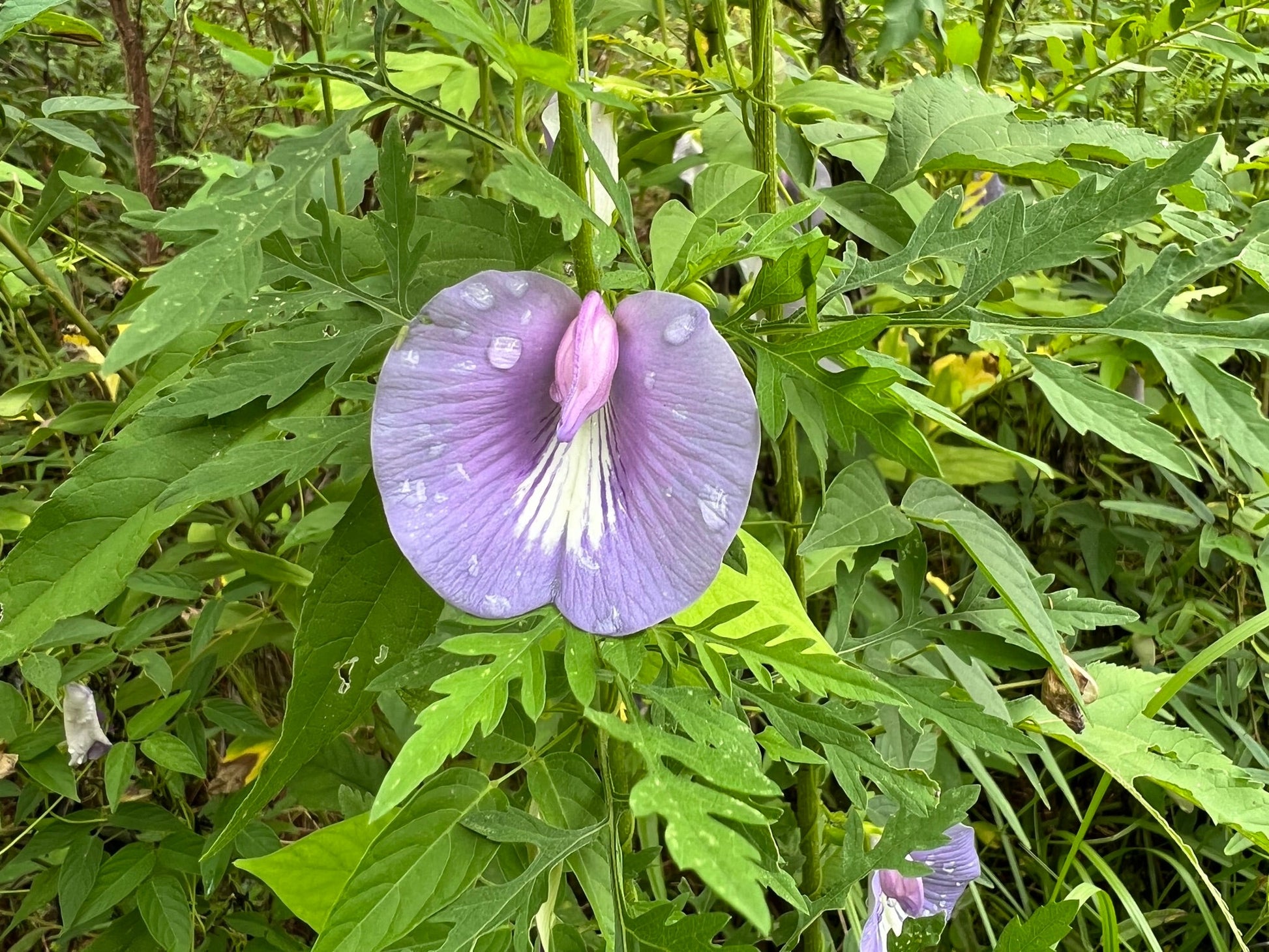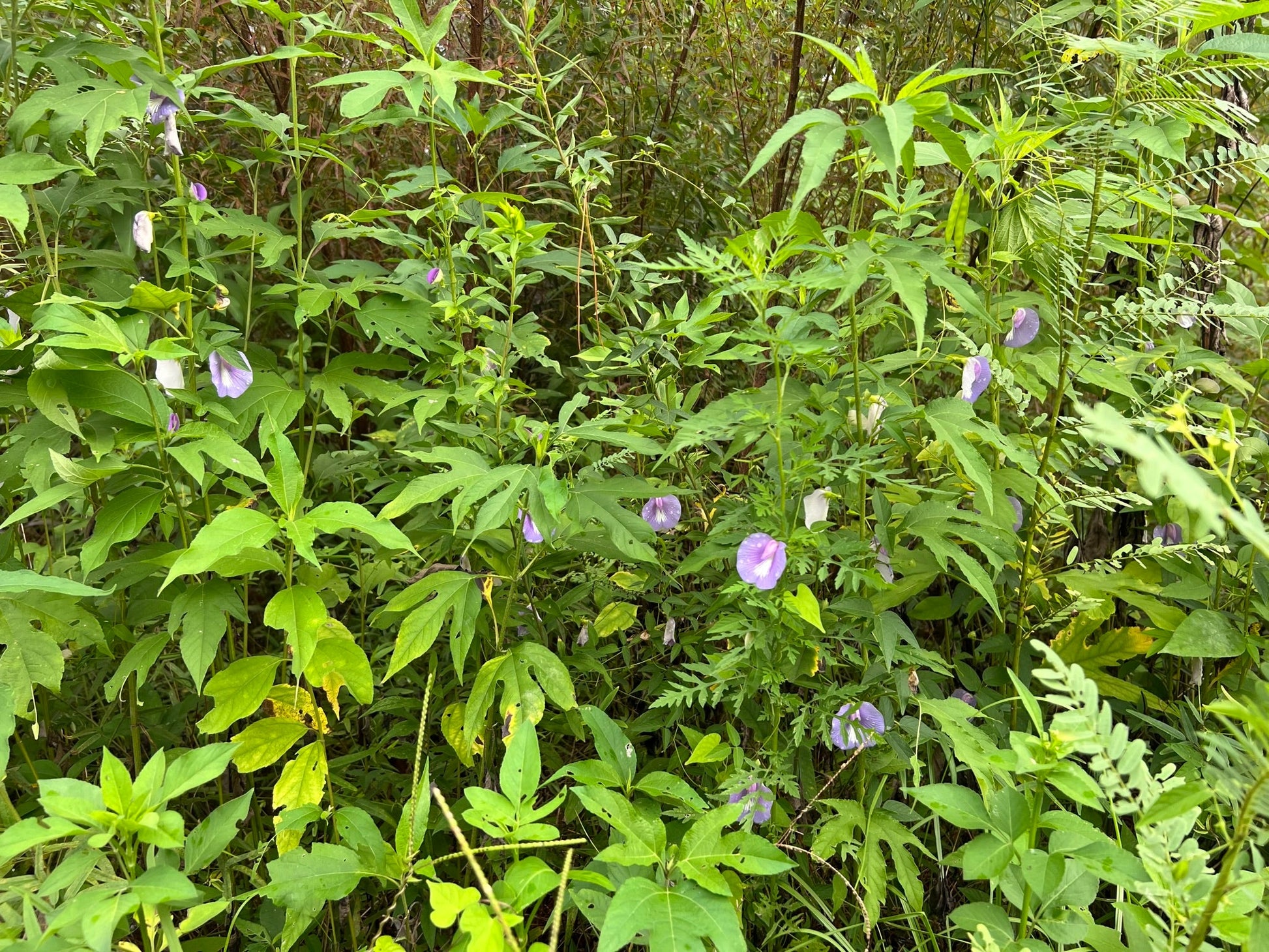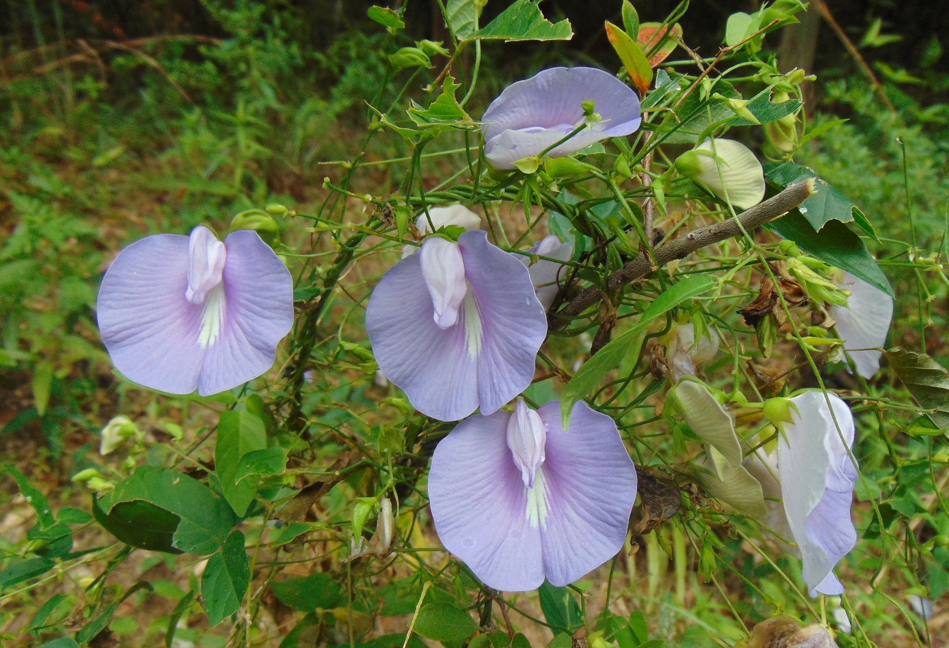 entrosema virginianum, commonly known as the Spurred Butterfly Pea, is a graceful and adaptable wildflower native to much of the southeastern United States, thriving in sandy soils, pine flatwoods, open woodlands, and coastal scrub environments. This twining or trailing perennial vine belongs to the legume family (Fabaceae) and is easily recognized by its delicate, butterfly-like flowers, which range in color from soft lavender to rich violet-blue. The blooms, typically seen from late spring through early fall, are distinguished by a distinctive spurred banner petal that curves backward, giving the flower a whimsical, almost ethereal appearance. Its slender stems can climb or sprawl across the ground, often forming low mats or climbing through grasses and shrubs. The foliage is composed of trifoliate leaves with narrow, lance-shaped leaflets that give the plant an airy, refined texture. As a nitrogen-fixing legume, Centrosema virginianum plays a valuable ecological role in improving soil quality, and its flowers attract a range of pollinators, especially bees and butterflies. It also serves as a larval host plant for the long-tailed skipper butterfly (Urbanus proteus), supporting local insect populations and contributing to biodiversity. Its drought tolerance, low-maintenance nature, and understated beauty make it a favorite in native plant gardens, wildflower meadows, and habitat restoration projects across the southeastern coastal plain and beyond.