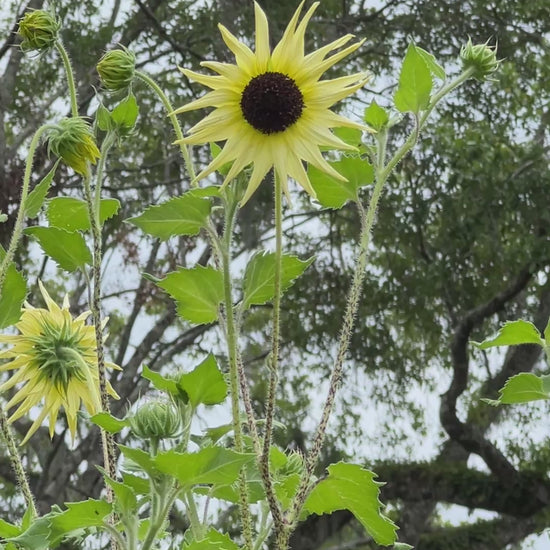 The ‘Vanilla Ice’ sunflower (Helianthus debilis subsp. debilis) is a charming and elegant cultivar known for its soft, creamy pale-yellow petals that contrast beautifully with dark central disks. Unlike the towering, bold appearance of traditional sunflowers, ‘Vanilla Ice’ has a more delicate, branching habit, producing multiple blooms on each plant and reaching a moderate height of about 4 to 5 feet. Native to coastal regions of the southeastern United States, Helianthus debilis is well-adapted to warm climates, thriving in full sun and sandy, well-drained soils. This cultivar is particularly attractive to pollinators like bees and butterflies and works well in wildflower gardens, borders, and cut-flower arrangements due to its long-lasting blooms. ‘Vanilla Ice’ sunflowers are appreciated for their airy, cottage-garden feel and their ability to bloom over a long season, often from midsummer into fall. With minimal maintenance requirements and good drought tolerance, they are an excellent choice for gardeners seeking a light, graceful alternative to more robust sunflower varieties